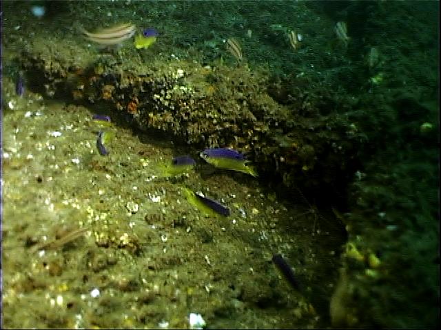 hull support finger and other gorgonian corals. Cleats and other protrusions are providing habitat for arrow crabs, cocoa damsels,