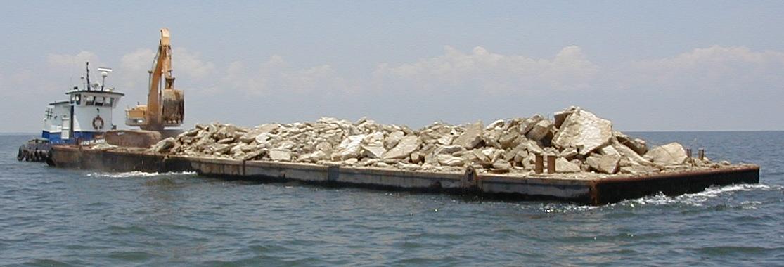 Rubble deployments were conducted by T&W Marine and PRIMOFISH.COM at the Horn Island Middle Gound Site FH-10. This deployment completes the Tidelands Fund fiscal year projects for MGFB. Surrounding water depth was 12 feet with a minimum depth of 10 feet recorded. The DGPS was recording 11 satellites, had a hoop of 1.2 and an estimated accuracy of 9 feet. The material was deployed around 2PM in the southeast corner of FH-10 at the following coordinates: